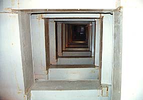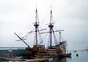 Nearing the end of our trip and moderately saddened that we wouldn't have time to tour through New York like we originally wanted, we braved on, undaunted, to Plymouth, Massachusetts. Even though it's size (or lack, thereof) was surprising, we enjoyed seeing Plymouth Rock, the landmark used by the pilgrims in 1620. Not far from the monument built to protect the rock was the Mayflower II, a replica of the original Mayflower. After milling around Plymouth, we "set sail" to Cape Cod, Massachusetts. We rounded the hook and stopped first at the Pilgrim Monument in Provincetown. Okay, maybe I'm not a history buff, but none of us ever realized that the Mayflower first landed at Cape Cod before pressing on to Plymouth. The climb up the monument wasn't nearly as challenging as Bunker Hill. There were ramps with landings in each corner instead of hundreds of steps. I couldn't resist a photo looking straight up the tower from the bottom with the ramps spiraling around above me. On the way up were what I'm guessing were cornerstones at one point in time which had been incorporated into the inner walls of the monument. Reading some of them was fascinating, but one that really caught my attention was one from Lincoln which apparently marked the area where Paul Revere ended his midnight ride in 1775. The view from the top was breathtaking. I could actually see the hooked shape Cape Cod is so famous for. I took two photos of Provincetown with the last little strip of raised land out in the ocean and digitally melded them together. Betcha can't find the seam where the two photos met!! We moved on to the end of the cape where a small park (we nearly missed it--it wasn't well marked) marks the general vicinity where the Mayflower first landed. The plaque on the stone reads: The first landing place of the Pilgrims, Nov. 14, 1620. The map in Mourt's relation shows that near this spot, the Pilgrims first touched foot on American soil... From this spot, we could also see the two nearly identical lighthouses, Wood End and Long Point. Our last two lighthouses were also on Cape Cod. Race Point, like the prior two, was not closely accessible, but Highland Light, otherwise known as Cape Cod Light, not only afforded a close-up view, but also featured a great view of the ocean from the edge of the bank over the beach. Highland Light found itself literally on the edge of danger as severe cliff erosion forced a plan to move the lighthouse. The move was successfully completed in the summer of 1996. In my photo of the lighthouse with a field in the foreground, you can just make out a small wooden stake in the ground which marked the former location of the tower's center. Another photo here of the beach cliffs are typical for much of New England's coasts. Just as a P.S., at the end of our trip, we seriously considered taking the time to cut over to see the Cape Hatteras Light in North Carolina for our last lighthouse. This one is a majestic tower and is one of the few lighthouses which permits visitors to climb to the top. Time just wasn't on our side, though.